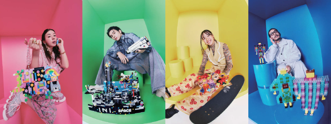 レゴグループのキャンペーン「Rebuild the World 創造力が、世界を変える」。日本における展開では、俳優の仲里依紗さん、INIの西洸人さん、スケートボーダーの吉沢恋さん、ファッションデザイナーの森永邦彦さんが登場。
